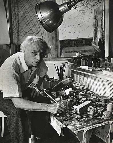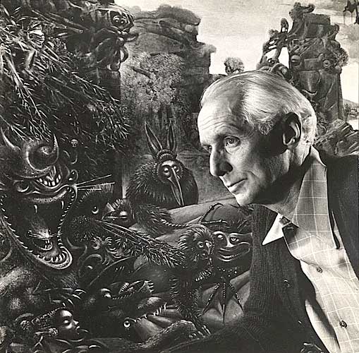 Max Ernst [1891-1976] with His Painting “The Temptation of Saint Anthony”